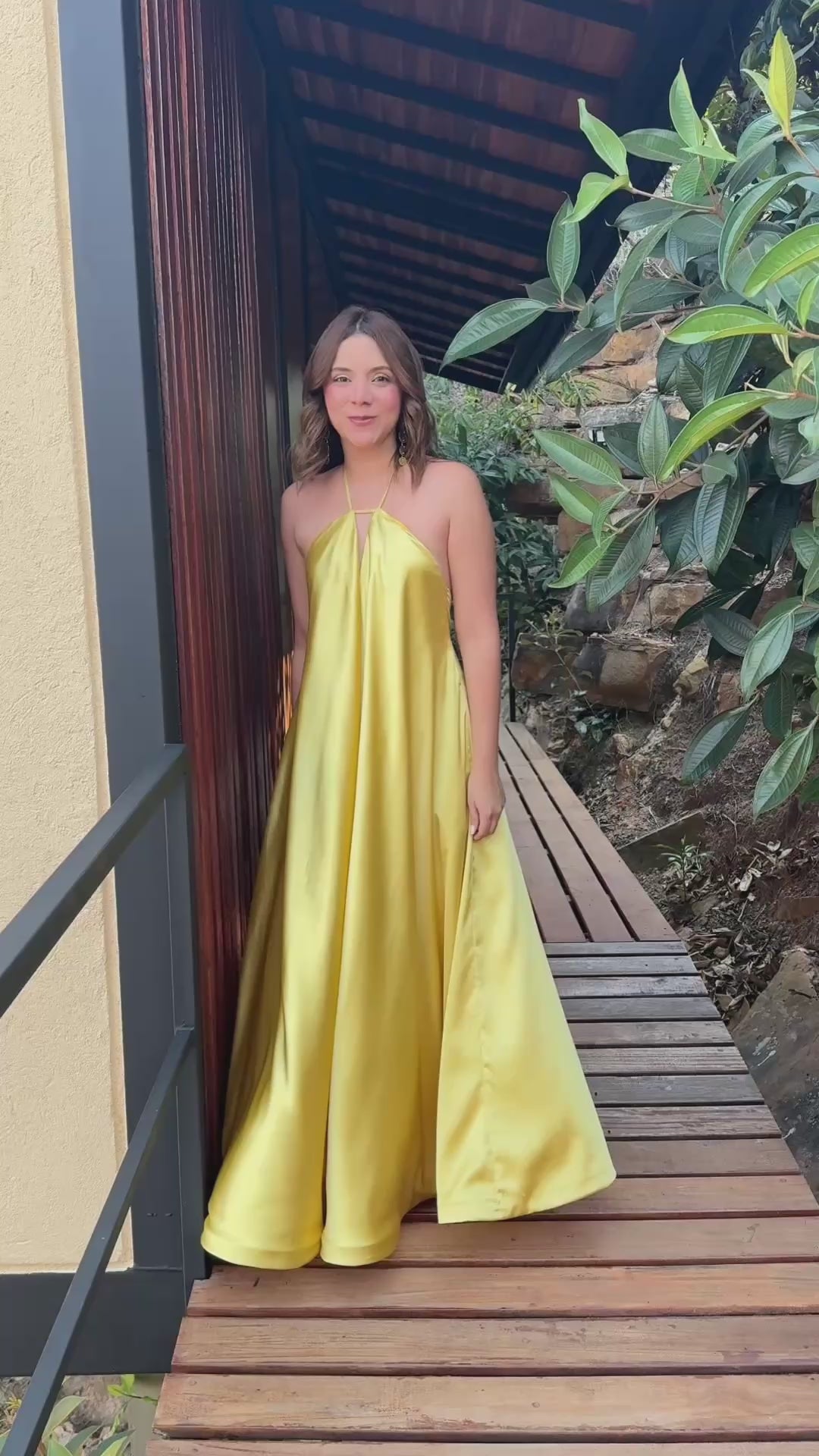 Vestido de silueta amplia con espalda descubierta, con forro. Elaborado en seda italiana.
